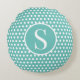 Turquoise Custom initial letter Polka Dot Round Cushion