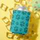 Turquoise dog paw print can cooler