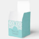 Simple and sophisticated Elegant Lace Wedding Favour Boxes featuring a white lace doily motif on a light turquoise faux vintage paper background. These classic and stylish boxes are perfect for a rustic wedding. Easy to customise with your wedding details. Click "Customise It" to find more personalisation options.