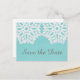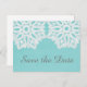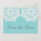 Simple and sophisticated Elegant Lace Save the Date Postcard featuring a white lace doily motif on a light turquoise faux vintage paper background. This classic and stylish postcard is perfect for announcing a rustic wedding. Easy to customise with your wedding details. Click "Customise It" to find more personalisation options.
