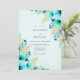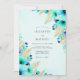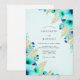 This ethereal design features vibrant turquoise and teal watercolor anemones that bloom across a serene light blue background. Shimmering gold ferns and delicate metallic-style leaves add a touch of luxury and sophistication to the botanical arrangement. The palette of soft blues and rich greens creates a refreshing and romantic mood, perfect for an elegant spring or summer event.