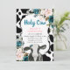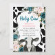 Holy Cow 1st Birthday invite. turquoise and pink floral