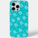 Turquoise Flowers Pattern iPhone 15 Pro Max Case