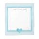Features a turquoise foil inset frame and heart, overlaying a turquoise background. Personalise the notepad with your own name or text.