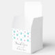 Cute and trendy Confetti Wedding Favour Boxes with fun confetti dots in turquoise and fuchsia. These simple and modern boxes can be easily customised with your wedding information. Find more customisation options by clicking Customise It.