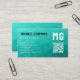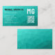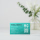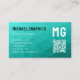 Turquoise geometric mesh pattern QR code Monogram Business Card