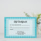 Turquoise pattern gift certificate. Pretty design for business or personal use. Personalise with your own name, address and details.