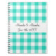Turquoise gingham pattern wedding favours spiral notebook