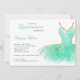 Elegant watercolor turquoise gown with gold glitter borders with back side in lovely watercolor brush strokes and gold glitter. All information is customisable with fonts of your choice and colour. Enjoy your customisation so you can have an invitation of your dreams.