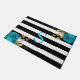 Turquoise Gold Floral Monogram Black White Stripes Doormat