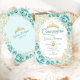 Turquoise Gold Floral Quinceanera Invitation