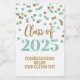 Graduation party custom mini wine bottle labels class of 2025 with turquoise and gold glitter pattern confetti.