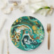 Turquoise, Gold, Marble Fluid Art Paper Plate