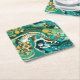 Turquoise, Gold, Marble Fluid Art Square Paper Coaster