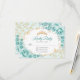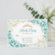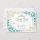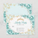 Turquoise floral Quinceanera RSVP reply card. Features, script font, gold butterflies, watercolor roses and tiara. Perfect for an elegant princess style glam celebration. Personalize with your own details.