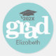 Turquoise Graduation Bold Typography Simple Modern Classic Round Sticker