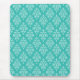 This elegant and modern mouse pad has a turquoise and mint green damask pattern.