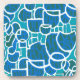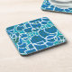 A set of 6 stylish cork-backed coasters, with a turquoise, sea green, deep blue and white abstract pattern, from a silkscreen print by Judy Adamson.