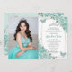Turquoise Green Floral Butterflies Quinceanera 15 Invitation