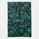 Turquoise green polka dot pattern on black tea towel