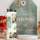 At the heart of this design lie the unique frames, meticulously crafted with grey lines that form a mosaic of memories. The focal point, a crystalline Christmas tree illustration in shades of light turquoise, white, and golden tones, graces the tumbler over a deeper turquoise and golden photo mount. But the magic truly unfolds when you replace the template photos with your five most cherished snapshots, making every sip a journey into the moments that matter most.