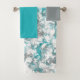 Turquoise grey and white abstract bath towel set