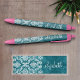 Turquoise Grungy Damask Pattern Custom Text Black Ink Pen