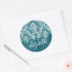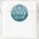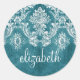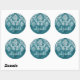 Turquoise Grungy Damask Pattern Custom Text Classic Round Sticker