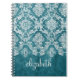 Turquoise Grungy Damask Pattern Custom Text Spiral Notebook