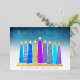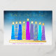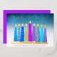“Peace, love & light.” A playful, modern, artsy illustration of boho pattern candles in a menorah helps you usher in the holiday of Hanukkah. Assorted blue candles with colourful real gold foil patterns, real gold foil flames and menorah, overlay a turquoise gradient to white textured background. Faux hot pink purple diamond pattern foil on a cornflower blue background for the reverse side. Feel the warmth and joy of the holiday season whenever you send this stunning, colourful, personalised Hanukkah flat greeting card. Matching envelopes, stickers, tote bags, wrapping paper, serving trays, home décor, and more are also available. Send this to someone special!