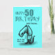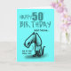 Turquoise happy 50th birthday cartoon dog card add a name on the front and message inside fully customise-able.
