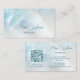 This elegant luxury business card features a turquoise blue iridescent mother-of-pear design and an elegant handwritten script. On the reverse side is a scannable qr code and a custom template for name, address and socials. This professional glam business card is perfect for salon, make up artists, jewellery and more.