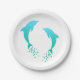 Turquoise Jumping Dolphin With Bubbles Paper Plate