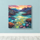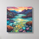 Immerse yourself in the tranquil beauty of this stunning turquoise landscape wall art, featuring intricate alcohol ink details. The foreground is adorned with abstract rocks in mesmerising shades of blue, green, and purple, each with swirling patterns that evoke a sense of movement and wonder. In the middle ground, a serene turquoise expanse offers a calming focal point, creating a perfect balance of abstract design and nature's tranquillity. This unique piece adds a touch of modern elegance to any space, perfect for art lovers and home decor enthusiasts alike.