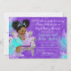 This baby shower invitation template features an African American Baby girl with adorable natural hair afro puffs pony tails with satin lavender bows. Wearing a gorgeous turquoise colour tiara and lavender pearl necklace. Matching items are available upon request.