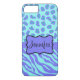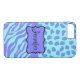 Turquoise Lavender Zebra Leopard Name Personalised Case-Mate iPhone Case