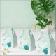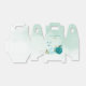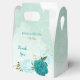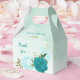 Beautiful wedding favour box featuring turquoise and light blue flowers and green leaves