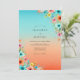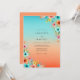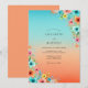 A vibrant design showcasing a seamless ombre gradient that shifts from cool turquoise to a warm, sun-drenched coral. Delicate watercolor wildflowers, such as poppies and cornflowers, adorn the corners in a whimsical spray of petals. This artistic botanical aesthetic evokes a cheerful, romantic mood suitable for a summer or beach event.