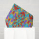 Lovebirds are a classic romantic theme, whether decorating gifts for a wedding anniversary or relationship milestone, or crafting something unique. This pretty mosaic look pattern with its mirrored birds is both unusual and eye-catching. The colour palette includes a pale tropical blue, like a turquoise ocean, combined with a fruity green, orangey reds, amber and purple, with hot pink accents. Lovely for a couple in love or for a destination wedding theme.