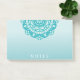 Turquoise mandala on a light blue ombre background with custom super elegant "notes" script on the bottom