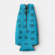 This bottle cooler has a mid-century modern design of scattered mazes on a field of turquoise.