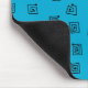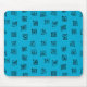 This mouse pad has a mid-century modern design of scattered mazes on a field of turquoise.
