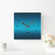 Turquoise Metallic Design Brushed Steel Look Square Wall Clock