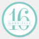 Bold and colourful round turquoise customisable birthday age and name text sticker favour label. Great accent for elegant and modern Bat Mitzvah celebrations, sweet sixteen, 16th birthday parties, Quinceaneras, baby showers, bridal showers, and weddings. Visit the Paper Grape Zazzle shop for coordinating party goods, stationery, and invitations.