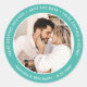 Turquoise Modern Wedding Photo Save The Date Classic Round Sticker