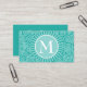 A contemporary monogram design in turquoise aqua and white with whimsical swirl spirals and classic white monogram.