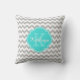 Turquoise Monogram Grey Chevron Pattern Cushion