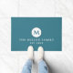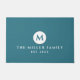 Modern turquoise doormat features a simple design with stylised monogram medallion in white with modern typography. Personalise with custom monogrammed initial, family name and established date, or or use the "contact this designer" button for help. A perfect wedding or housewarming gift for the stylish couple.
