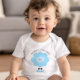 A sweet, playful visual of a cute, kawaii, light blue lamb plus grey and cyan blue handwritten typography adorn the front of this adorable baby boy, custom name onsie bodysuit. Personalise with baby’s name. Great gift for a new baby, as well as for a baby shower. A fun, special, unique gift!