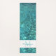 This stylish yoga mat is decorated with a water design in shades of turquoise and blue.